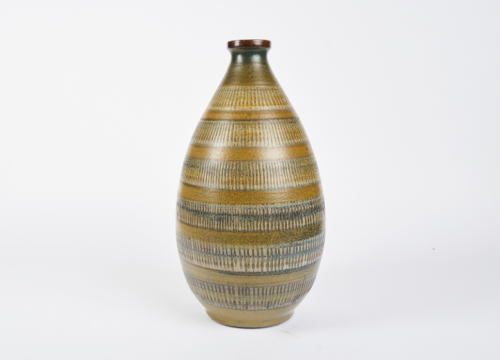 Created by the Swedish ceramist Arthur Andersson in the middle of the 20th Century, these voluminous vases are noteworthy for their formal symmetry and their banded designs, which often run in either horizontal or vertical patterns of zig zags, striations, or waves.